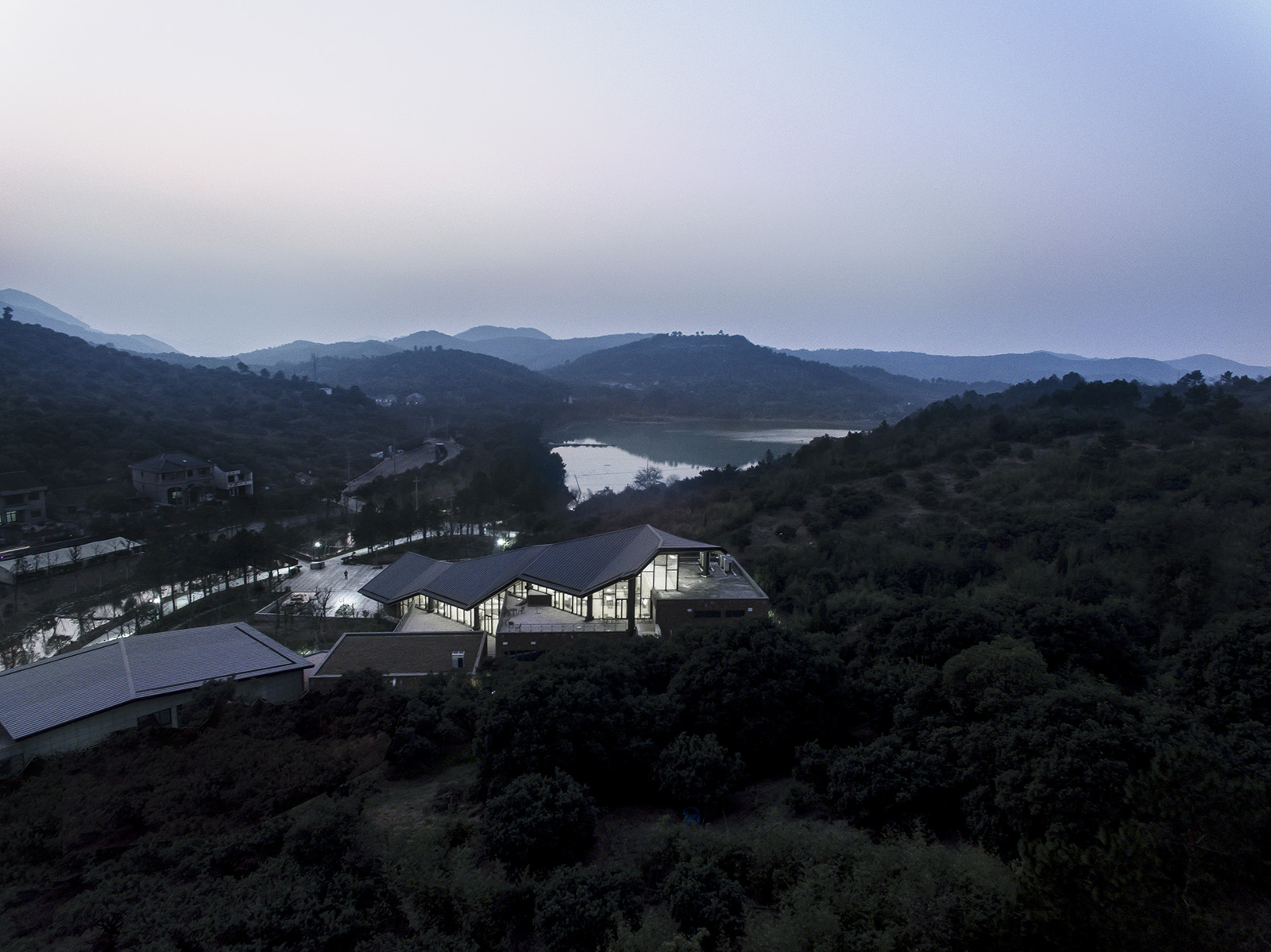 越窑博物馆位于慈溪上林湖南岸,是此处国家考古遗址公园的主要展示建筑及科研附属设施。建筑空间随地势而造,与上林湖沿岸遗存的龙窑形态形成对话, 折面屋顶呼应传统建筑的风貌,一系列连续的展示空间与呈上升态势屋顶形成向四周自然场所开放的公共活动空间,使观者在不断攀升的流线中保持与周边环境的对望。屋面亦在空间内部产生了立面般压迫的效果,将人的视线通过屋面与地面转折的几何关系导向不同的空间节点。